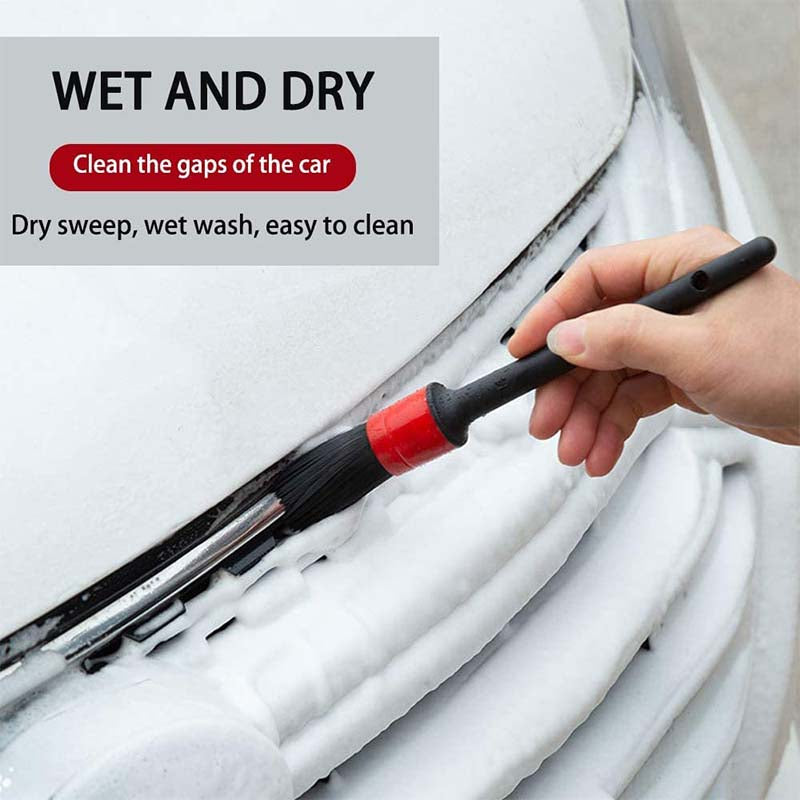 - Professional Car Detailing Kit Interior: Our car cleaning brush head is thick, able to hold a good amount of soapy water for more cleaning action, great for wet and dry use. Aims to clean the dust, bread crumbs, food residue, and other small things out of your air vents and other gaps. Best car detailing brush set for car exterior, wheels, tires, engine bay, leather seats emblems air vents cleaning.