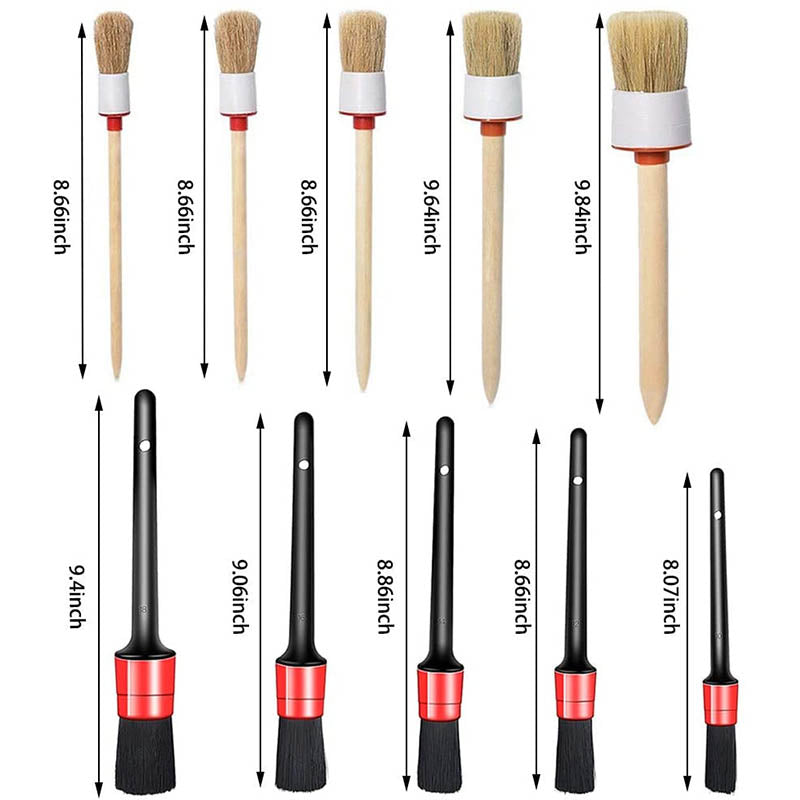 - Natural Wood Handle Detailing Brush Set: detailing brushes are round shape and smooth surface, anti-slip and offer comfortable grip. Gentle and soft car detailing brushes in different sizes , perfect for you to clean the interior and exterior of the auto, the wheels, the dashboard, the wiper, the air vent, the glasses, the seats and other tiny places.
