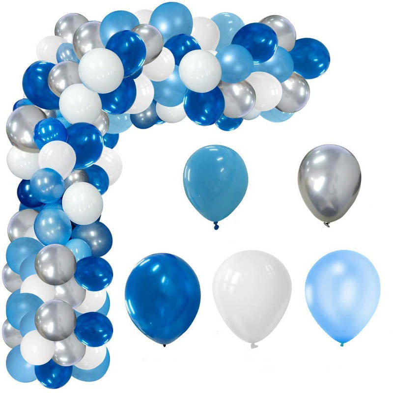 - Blue and silver balloon garlands are a popular trend for party supplies. White and blue balloons can be filled with air or helium, but blue balloons will not float when pumping air. The blue balloon arch will definitely create your party or royal balloon garland arch decoration.
