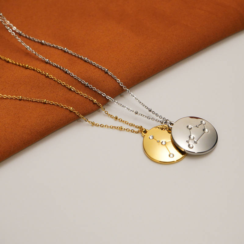 - 12 Constellation Necklace, Made of Titanium Steel and Glass Diamonds.