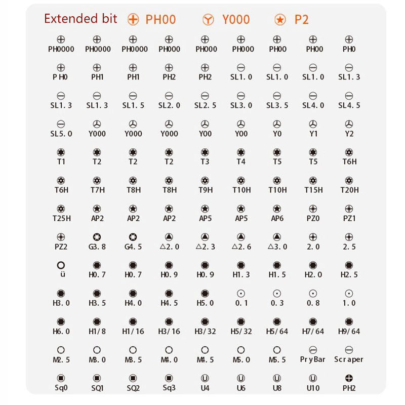 - Multi-Use Bits: This magnetic screwdriver included 120pcs multi-size bits: Phillips, Torx, Torx with hole, slit, pentagram, pozidriv, Y-Type, hex, triangle, U-Type, square, hexagonal, and handle, extension bar. Electronics magnetic screwdriver set repairing cleaning kit for iPhone cellphone, PC, laptop, computer, Switch, game consoles, watches, glasses, camera, Xbox, other electronic devices, etc.