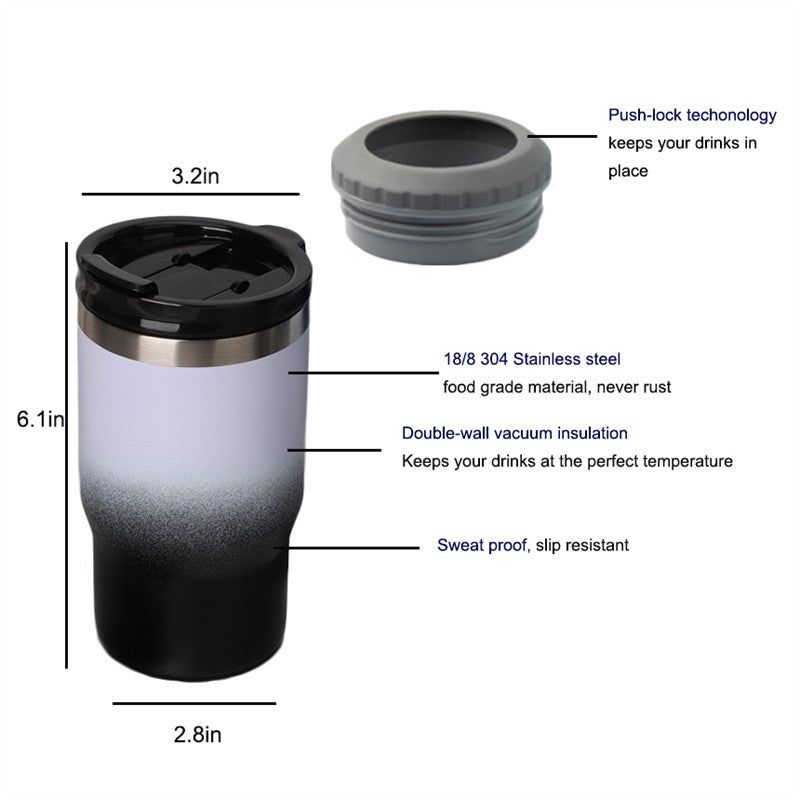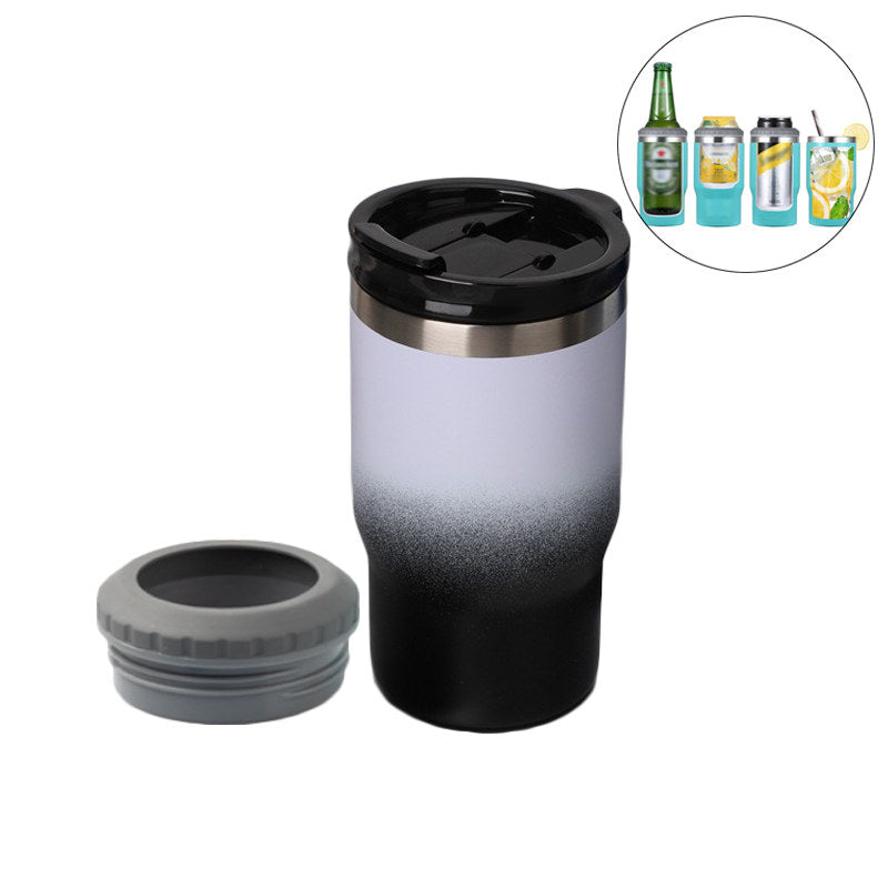 - Easy to Use: This 4 in 1 insulated can cooler couldn't be easier to use. Just twist off the grey ring, drop in your favorite chilled beverage, twist the grey ring back on, and enjoy! Or pour your beverage in and snap on the lid for a ready-to-go tumbler. It's dishwasher safe and cup holder friendly.
