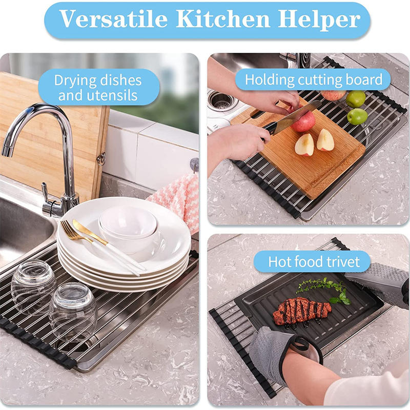 - High Quality: Made of stainless steel, durable construction, the sink foldable draining rack is sturdy, rust-proof, non-slip, waterproof; not easily bent or twisted by heavy kitchenware. Great apartment essentials and home accessories.