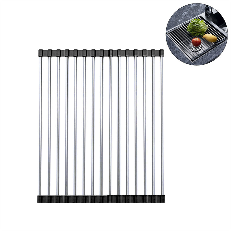 15Tubes Roll-Up Dish Drying Rack Stainless Steel for Kitchen Sink-Black