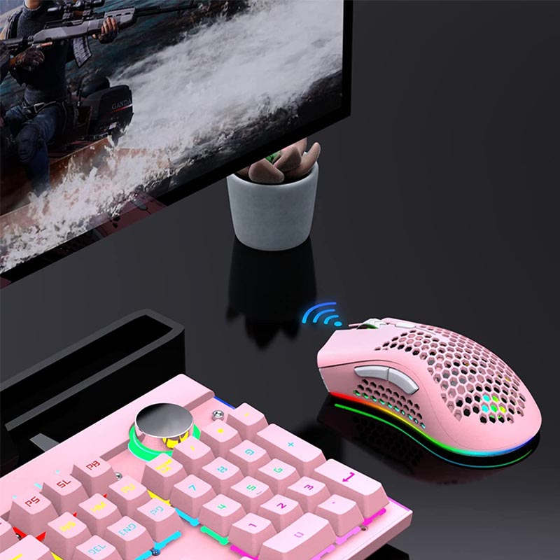 2.4G Wireless Lightweight Gaming Mouse with RGB Backlit Adjustable DPI-Pink