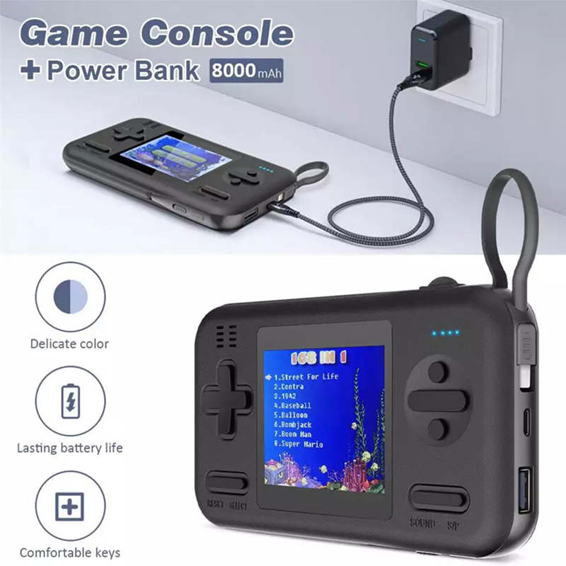 - Game Console With 416 Classic Games: This product is uniquely designed game player and power bank in one device. 2.8 inch color screen, built in 416 classic retro FC games, including kinds of the current popular puzzle games. Perfect nostalgic gift for adults, or great puzzle games for kids.