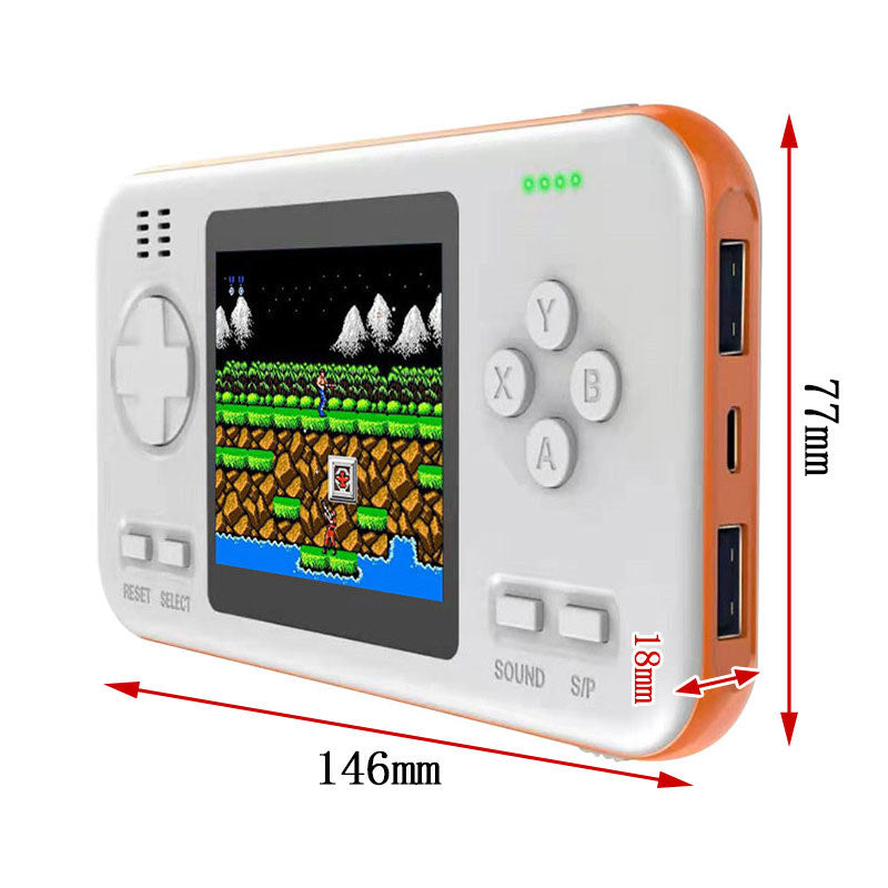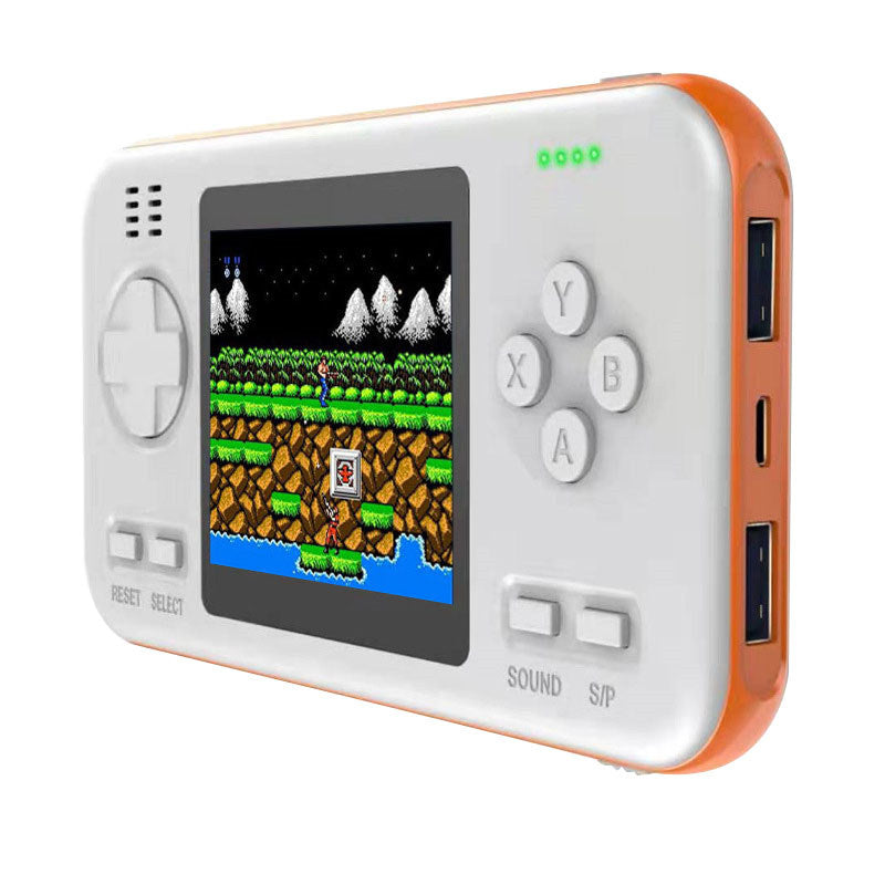 2 in 1 Handheld Game Console 8000mAh Power Bank with 416 Classic FC Games-White Orange