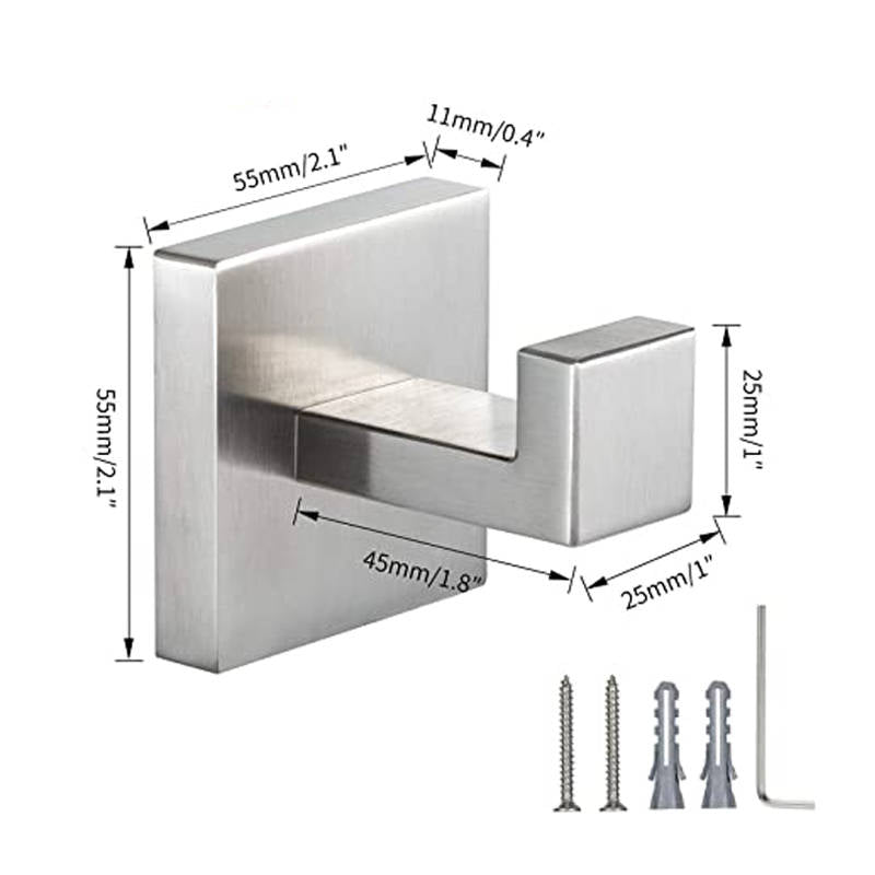 2 Pack Bathroom Hooks 304 Stainless Steel Square Wall Hooks-Silver