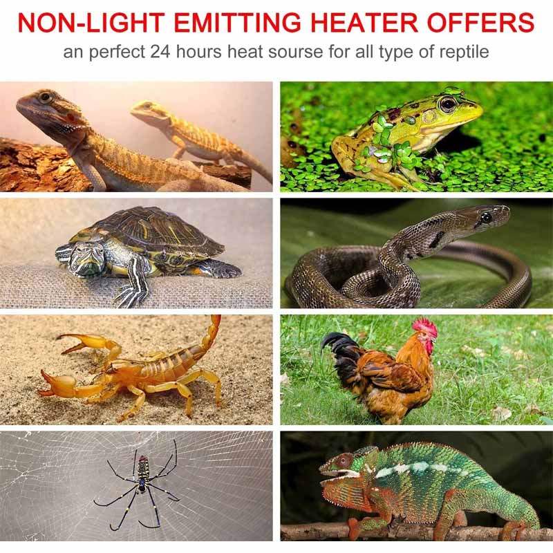 - The surface temperature of this bulb is very high when it is working. Please do not test the temperature with your hands. Please also adjust the distance between the heating lamp and the pet.