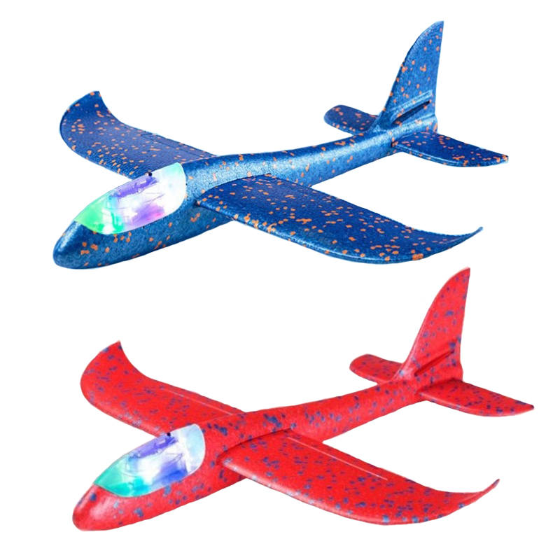 2 Pack LED Light Airplane Kids Throwing Foam Plane Outdoor Sport Toys Birthday Gifts-BlueRed
