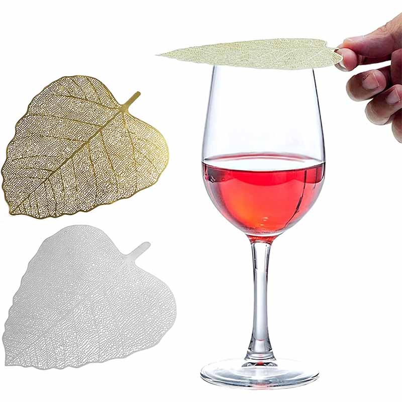 2 Pack Wine Glass Cover 304 Stainless Steel Creative Leaves Shape Cup Lid-Set1
