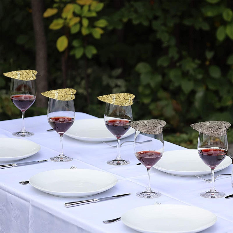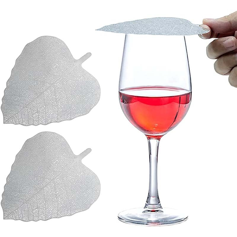 2 Pack Wine Glass Cover 304 Stainless Steel Creative Leaves Shape Cup Lid-Set3