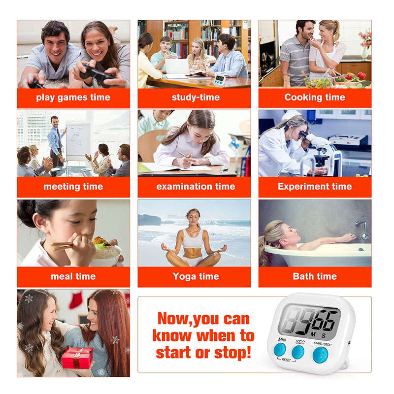 - Just a glance from across the room and you can easily read the timer display with Kitchen timer is big, bold digits, visual timer. Ideal for those with not the best eyesight.