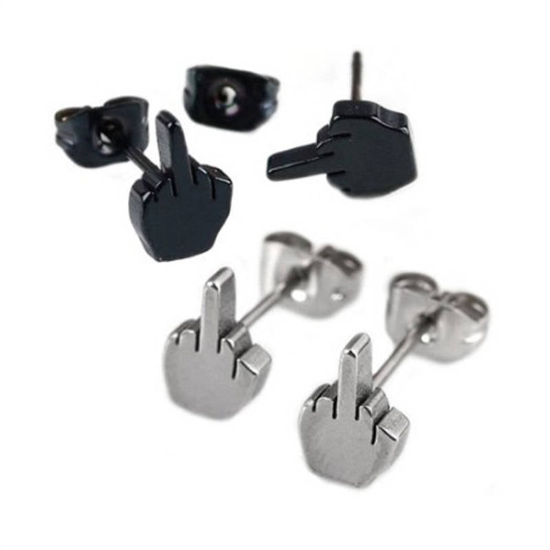 2 Pairs Punk Stainless Steel Middle Finger Ear Studs Womens Mens