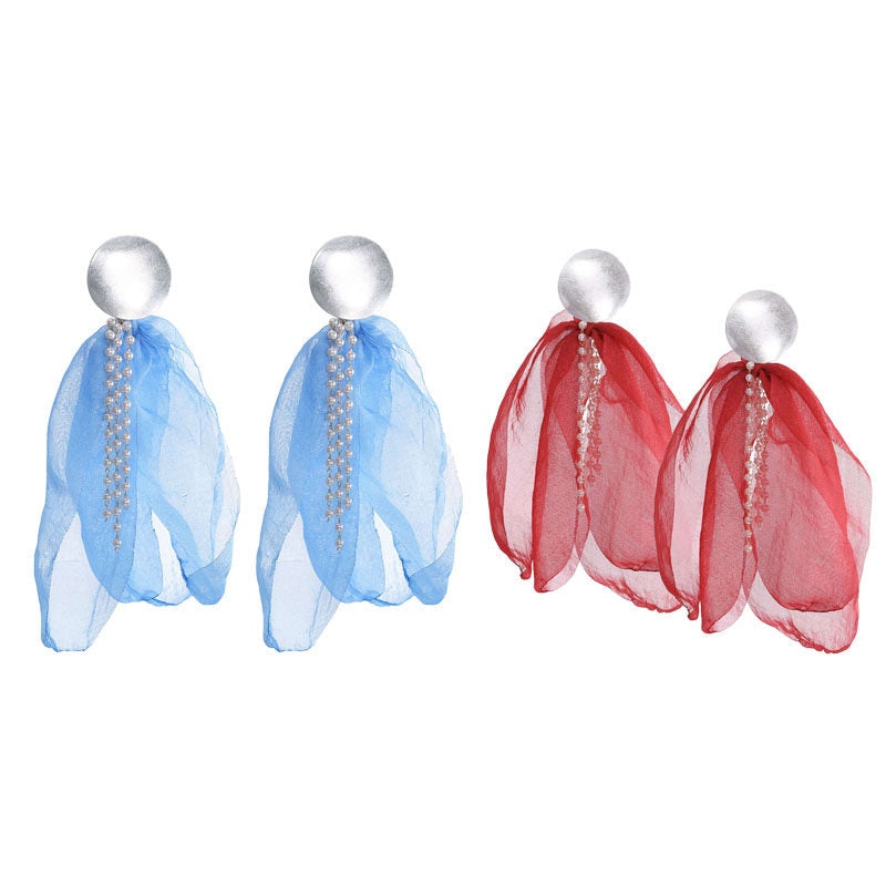 - These flower drop earrings feature pearl tassels that extend the curves of the face. Flower drop earrings feature long four petals and long pearl fringes.