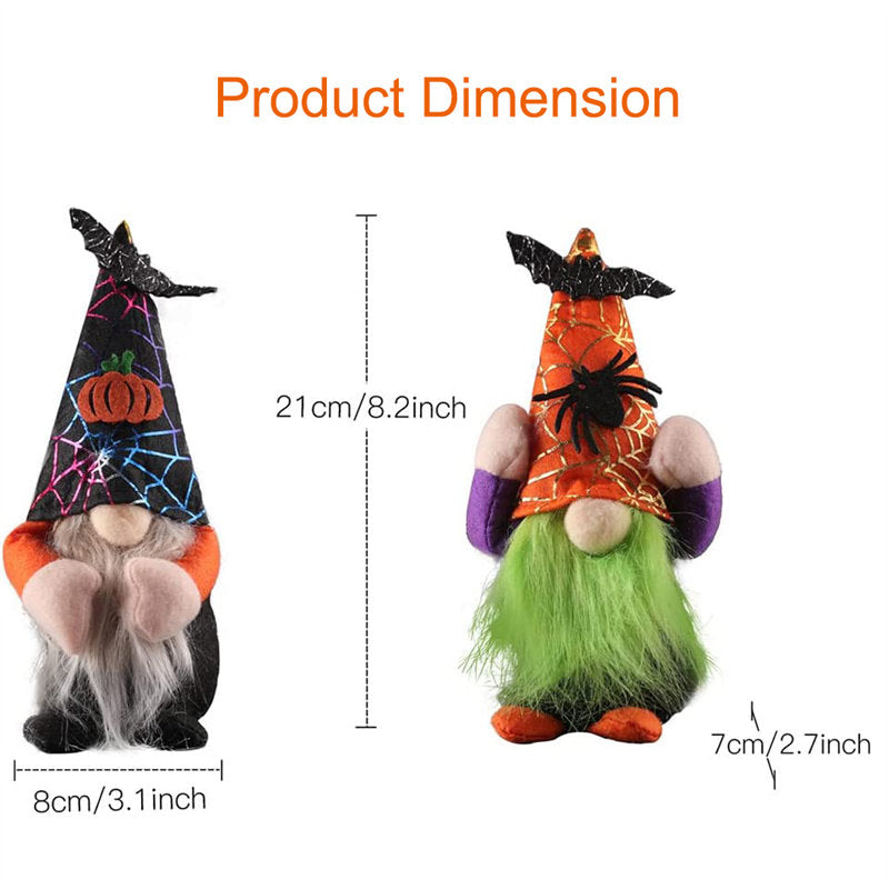 2 Pcs Halloween Gnomes Plush Dolls Spider Pumpkin Handmade Ornaments