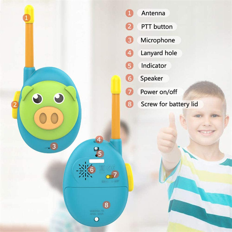 2 Pcs Kids Walkie Talkies with Lanyards 2 Way Radios for 3-12 Year-Blue/Pig
