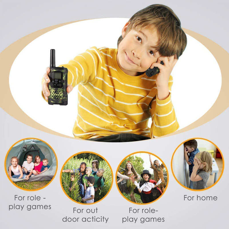 - Best gift and toys for age 3 and up: With channel scan, channel lock, Low battery alert, simply press PTT key to talk using built-in microphone and stay connecting with your friends and families especially in outdoor activities. Creative electronic gifts for Halloween Christmas birthday festivals, suitable for 4, 5, 6, 7, 8, 9 years old boys and girls.
