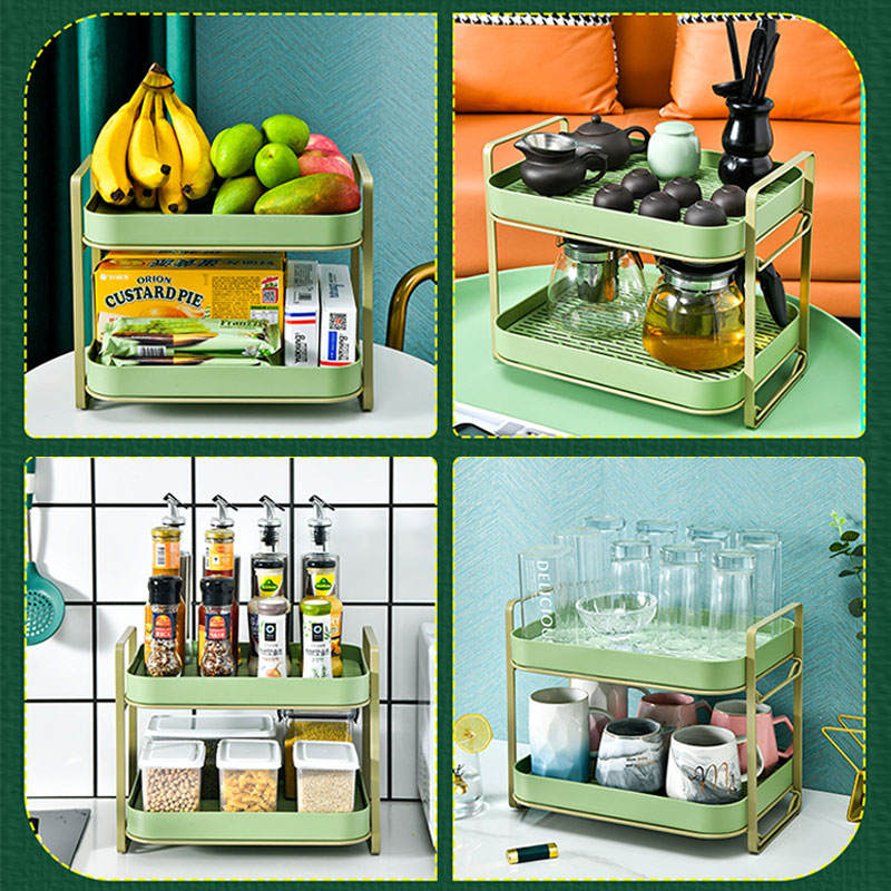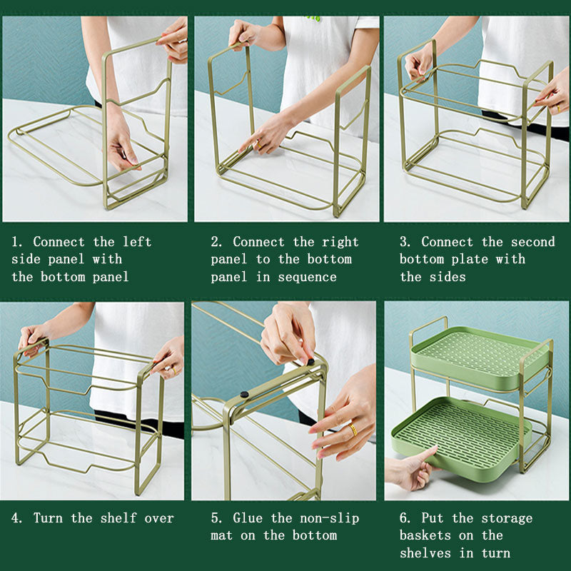 - Features of dish drainer: 2-layer design, saving countertop draining; multifunctional dish drainer, can be used to organize mugs, water glasses, glass bottles, store fruits, vegetables and snacks, and can also be used as a spice rack; the tray is detachable , easy to clean and use, hollow design, good drainage, better keep the table dry.