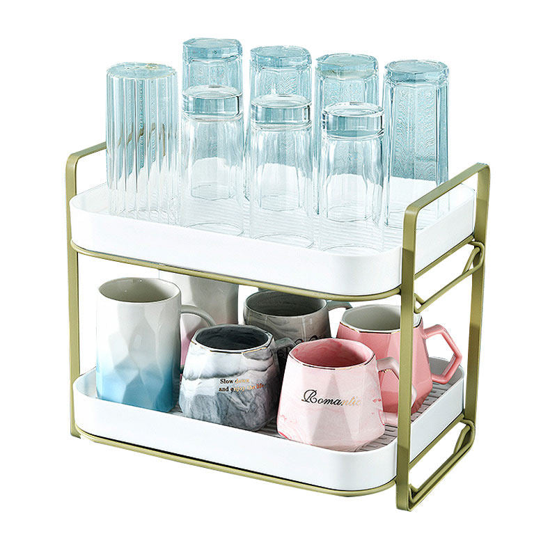 2-Tier Mugs Drying Rack with Drain Tray for Fruits Bowls Storage-White