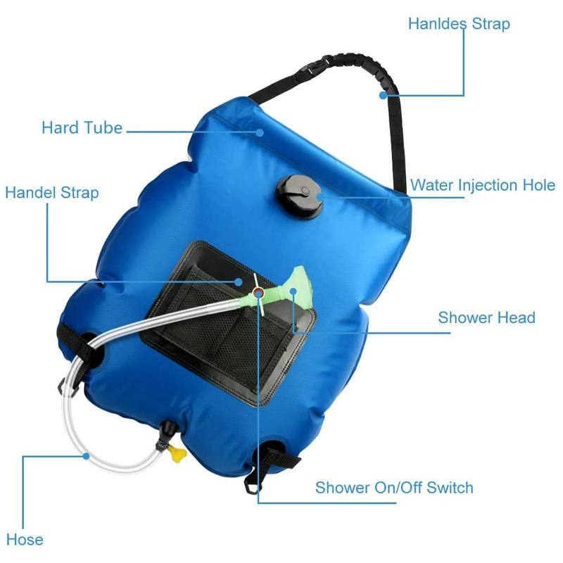 20L Solar Shower Bag with Removable Hose and Shower Head for Camping-Blue