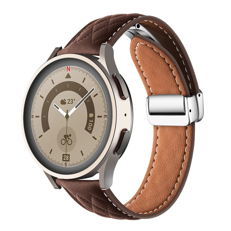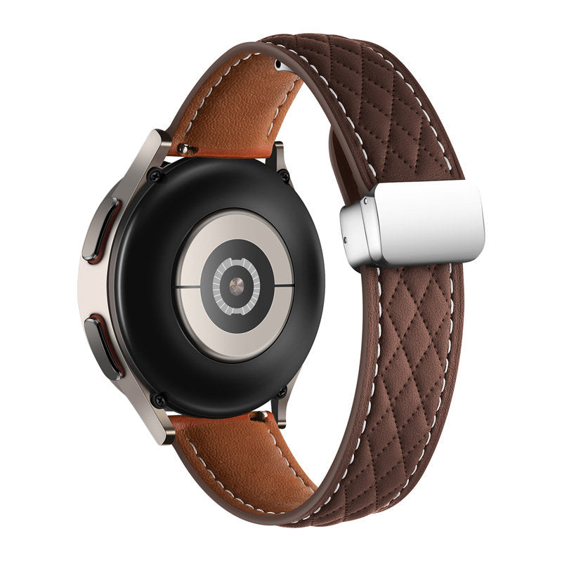 20mm Classic Leather Band Silver Folding Buckle for Samsung Huawei Watch-Coffee