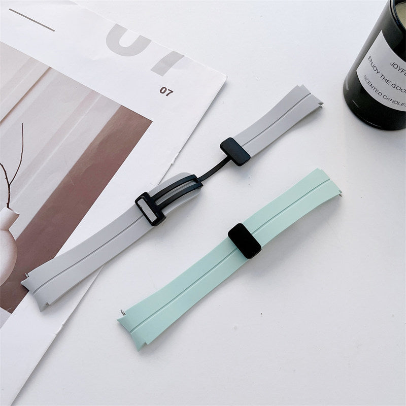 - Magnetic folding buckle universal silicone strap, high-quality environmentally friendly silicone material, waterproof, sweat-proof, soft and light skin non-allergic. The buckle is made of metal stainless steel, with a high-grade atmosphere and texture. Perfect for everyday wear or outdoor activities.