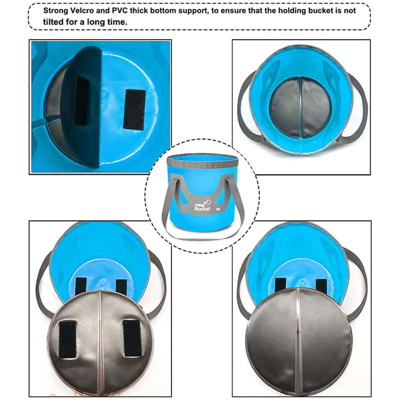 - Upgraded Base and More Stronger: Our new folding bucket adds thicker PVC film and uses velcro to glue the bottom to make the bucket more stable.
