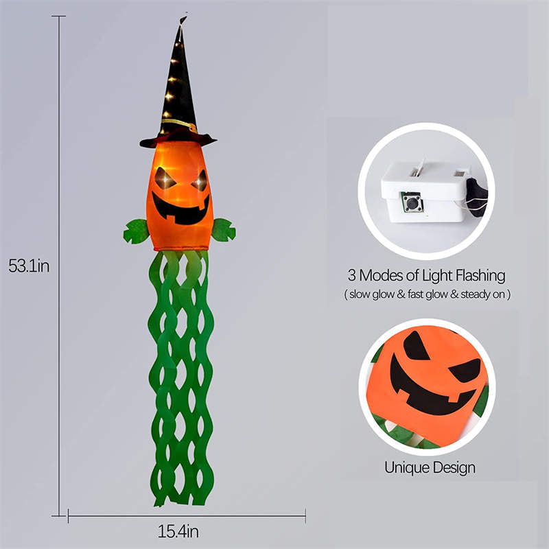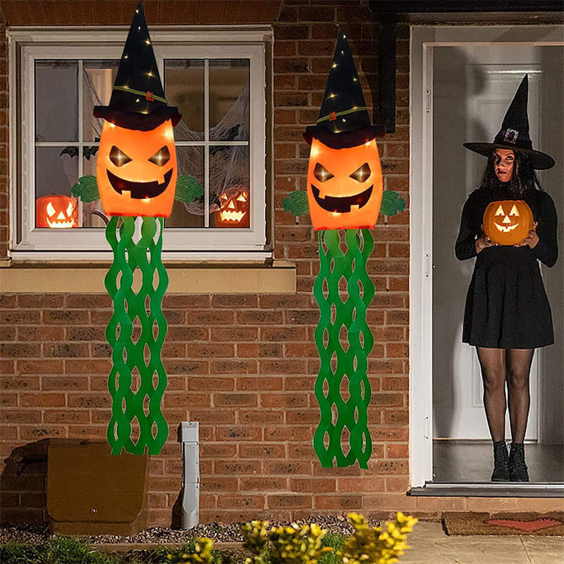 2Pcs Halloween Decorations Pumpkin Witch Hat Outdoor Hanging Lights for Party Ornaments