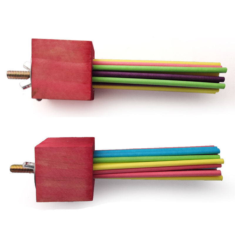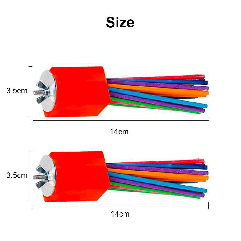 Bird toys are not only entertaining through the fun of peeling and chewing lollipop sticks, but also serve as an alternative perching device. Create a foraging experience by stuffing seeds between lollipop sticks.