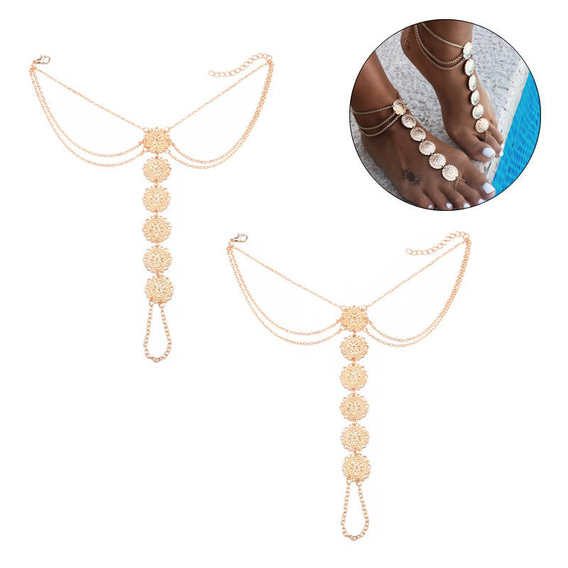 2Pcs Summer Beach Coin Anklets Foot Accessories for Women