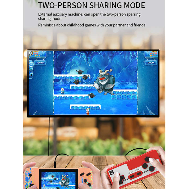 - Additional game controllers are included in the package to support 2 people playing games at the same time. Let you have fun with the game for two people. If you want a more vivid and exciting gaming experience, you can also connect your console to your TV to enjoy fun and vivid games on a bigger screen.