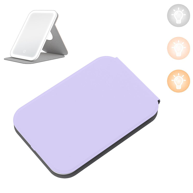 3 Colors LED Makeup Mirror Touch Screen Foldable 360?? Rotation-Purple