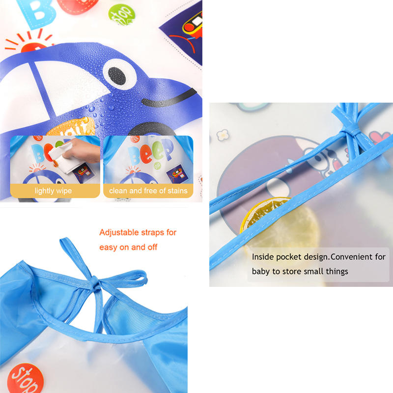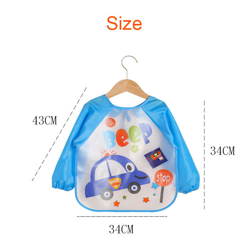 3 Pcs Baby Waterproof Cartoon Long Sleeve Bib Art Smock-A