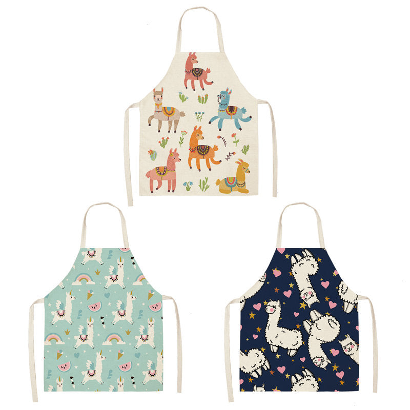 3 Pcs Kids Alpaca Printed Linen Apron Bib for Cooking Painting-3