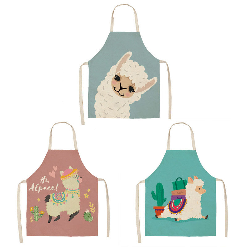 3 Pcs Kids Alpaca Printed Linen Apron Bib for Cooking Painting-9