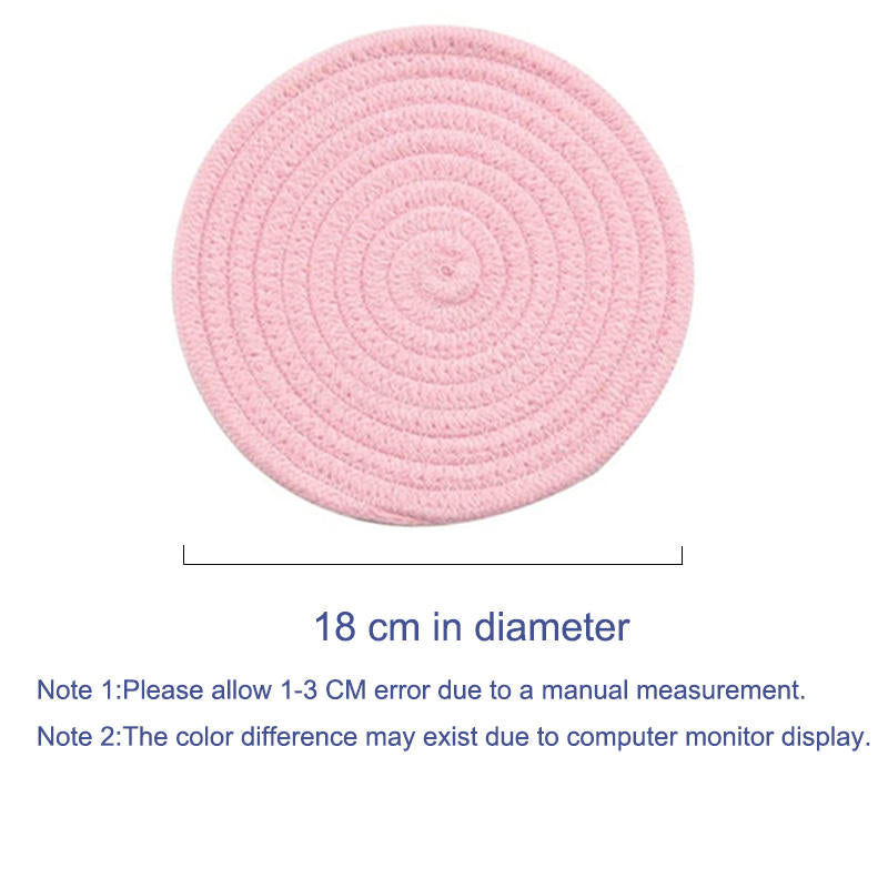 3 Pcs Potholders Colorful Cotton Thread Weave Stylish Coasters Heat Insulation Table Mat by Diameter 18CM-Pink