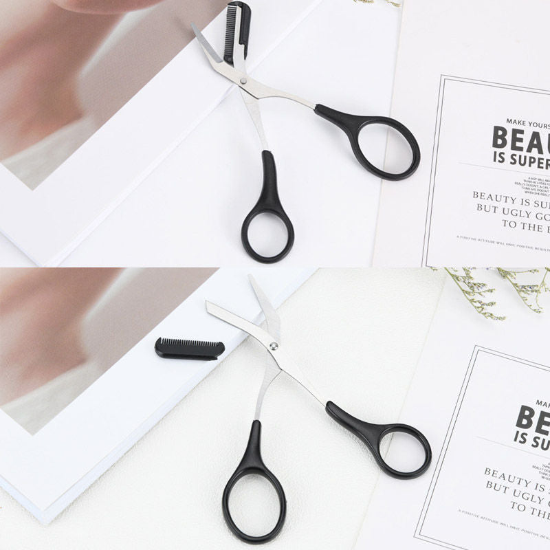 3 Pcs Stainless Steel Trimming Scissors with Eyebrow Comb and Non Slip Finger Grips-A