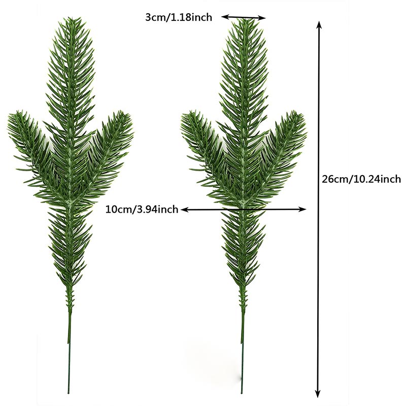 - Size:Length: about 26cm(L) x 10cm(W)/10.24inch(L) x 3.94inch(W).Each pine needle have 3 stems.