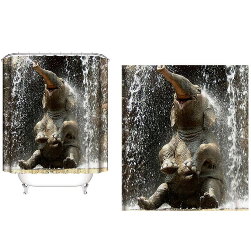 3D Printing Elephant Shower Curtain Bathroom Decor with 12 Hooks-1