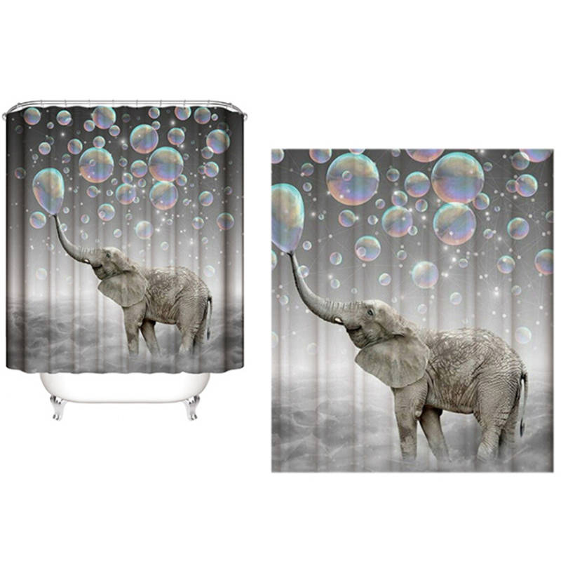 3D Printing Elephant Shower Curtain Bathroom Decor with 12 Hooks-3