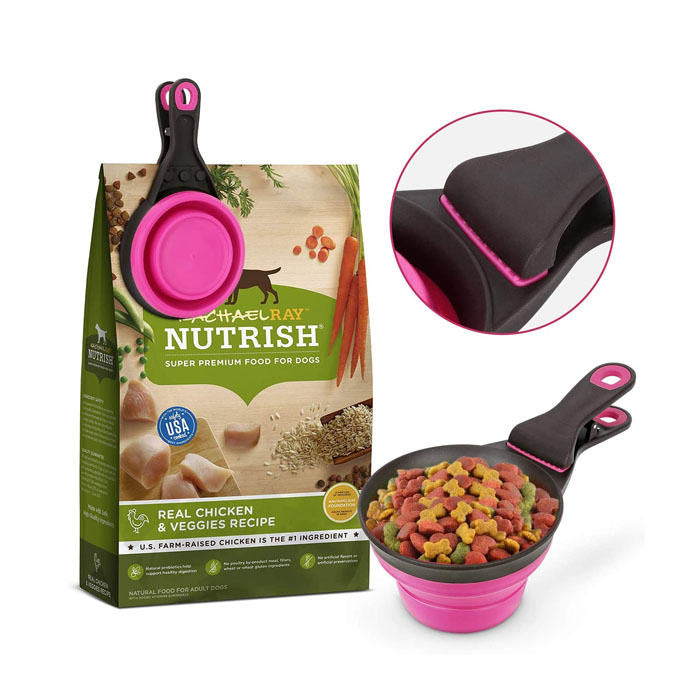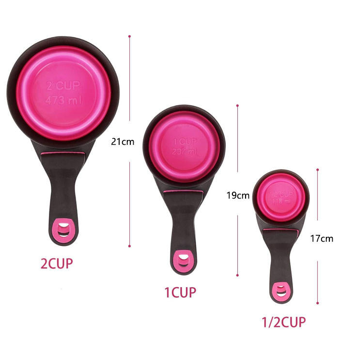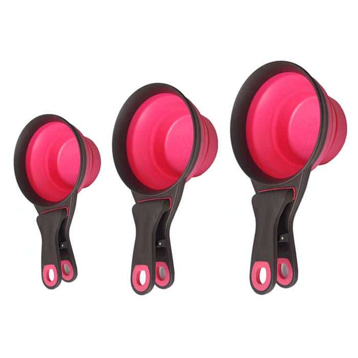 3Pcs Pet 3 in 1 Clip Scoop with Collapsible Silicone Measuring Cup-Pink