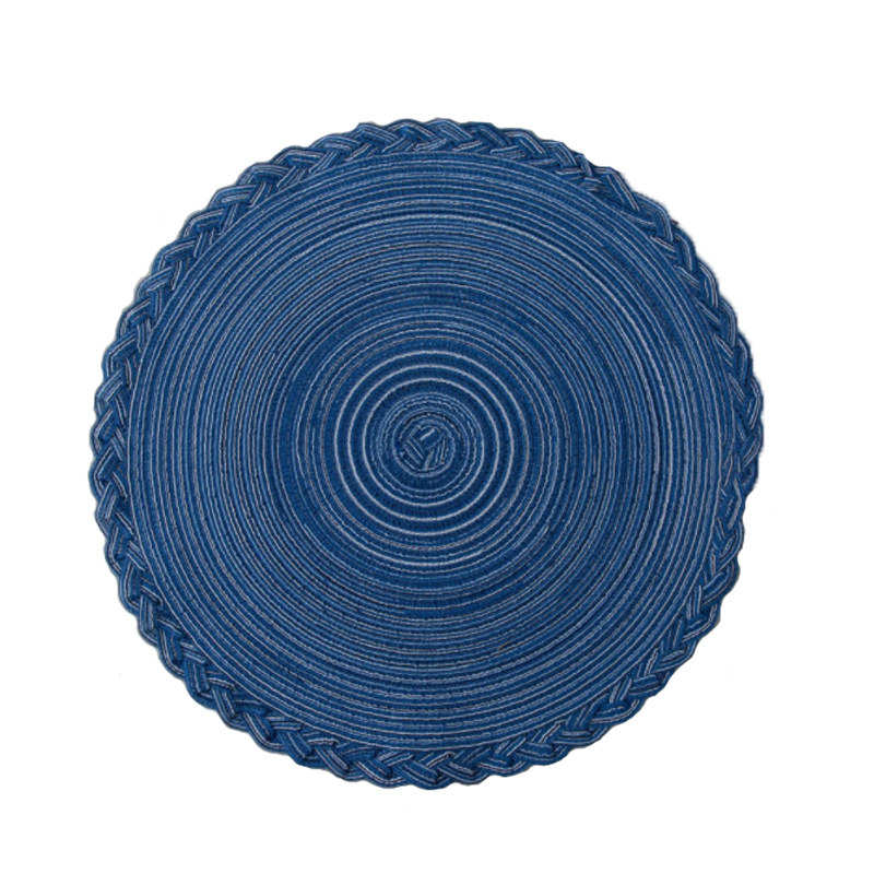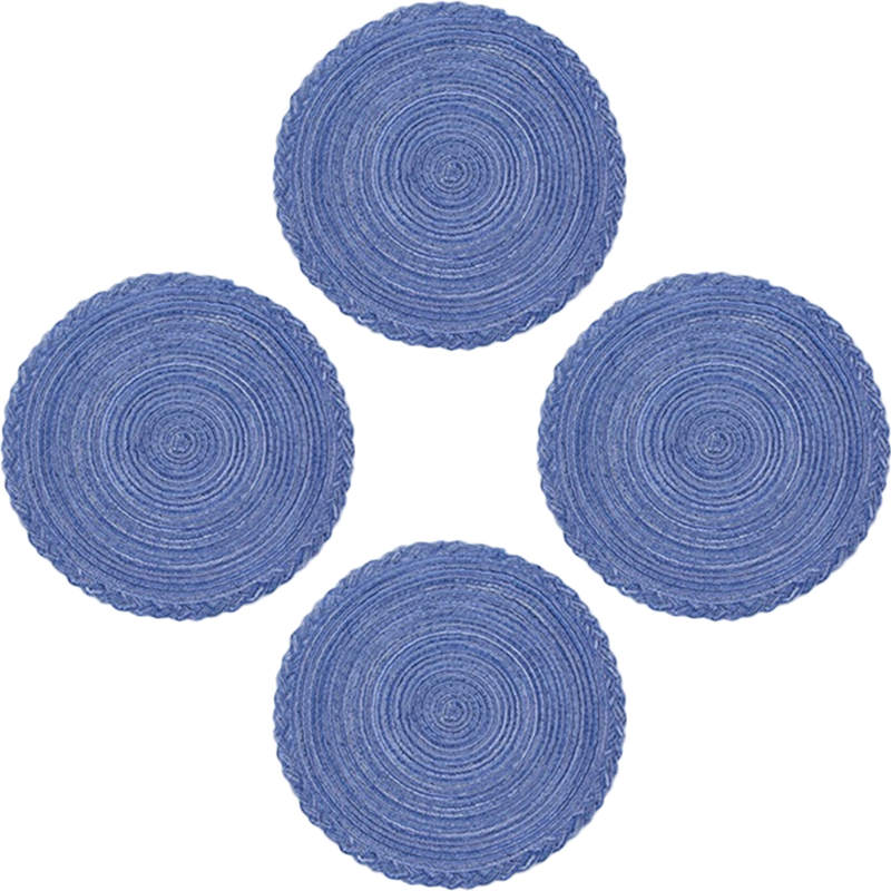 4 Pack Round Braided Laciness Placemats 38CM Washable Kitchen Table Mats for Home Wedding Party-Blue
