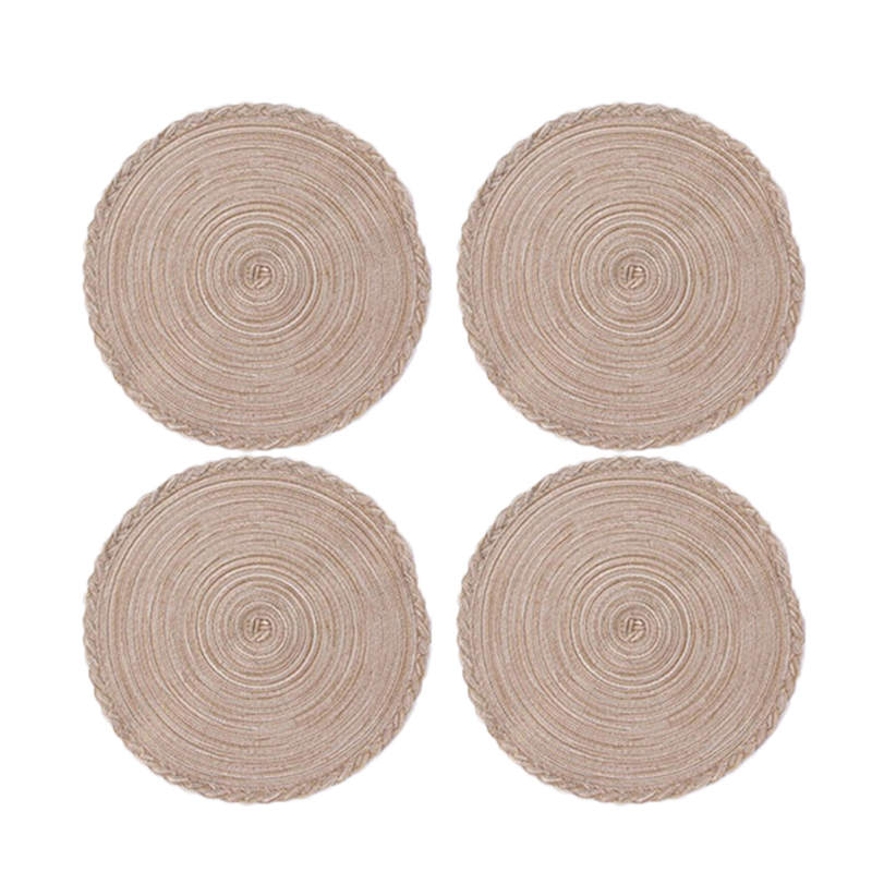 4 Pack Round Braided Laciness Placemats 38CM Washable Kitchen Table Mats for Home Wedding Party-Coffee