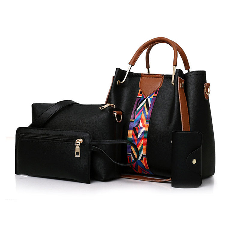 4 Pack Womens Contrast Webbing Handle Bag Crossbody Shoulder Bags Clutch -Black