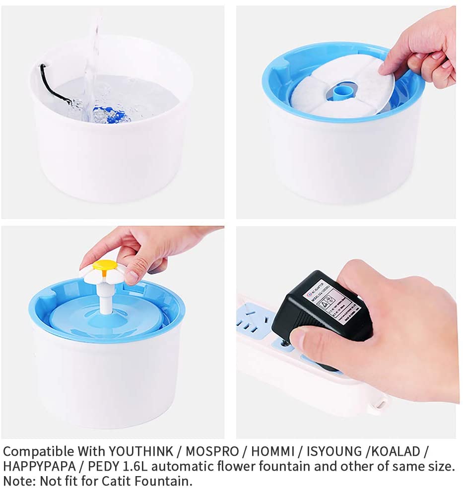 This Water Fountain Filter is suitable for most of the flower fountain dispenser, also for other automatic pet flower water fountains.