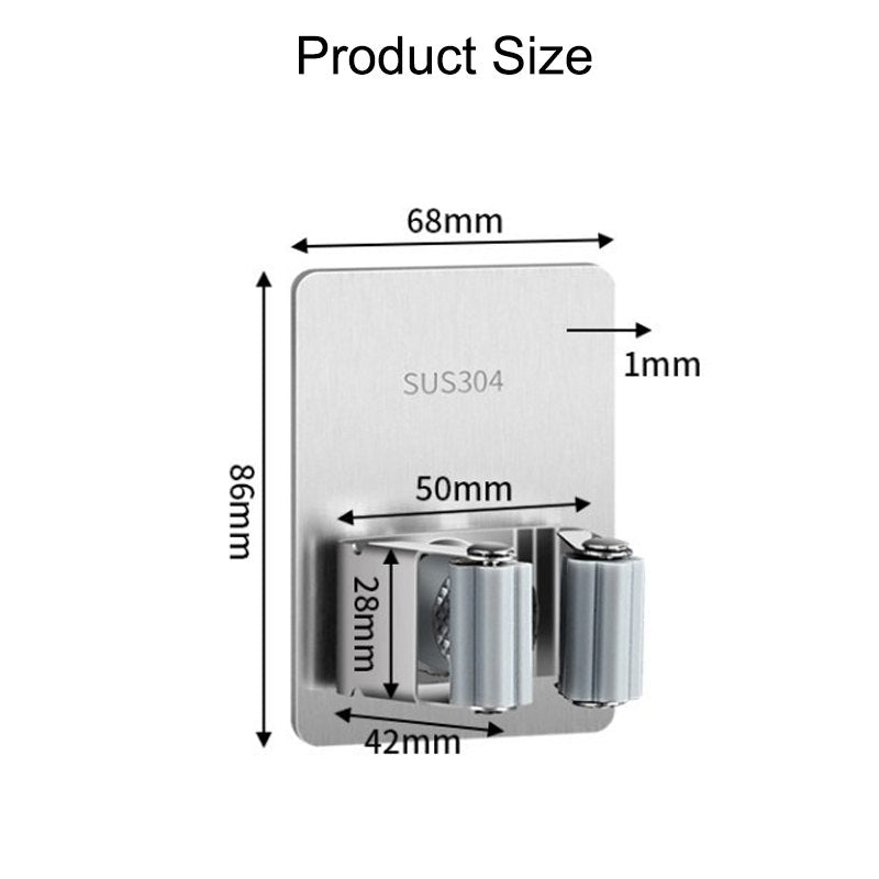 4 Pcs Broom Mop Holder 304 Stainless Steel Self Adhesive Rack for Garage