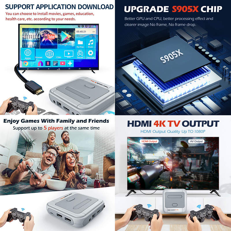 - Enjoy 4K HD Display: This retro console supports 4K(1080P/720P) HD output,with clearer picture quality ,you can enjoy vivid and exciting retro games on your 4K TV and projectors .This super console x game console also support saving game progress, very convenient.