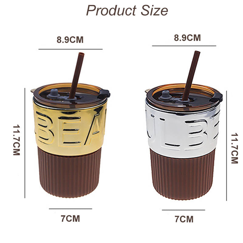 420ml Glass Coffee Mug with Lids and Straws Travel Friendly-GoldAmber