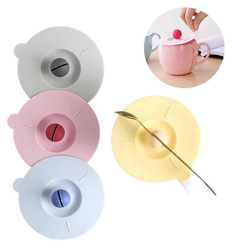 4Pcs Food Grade Silicone Cup Lid Can Put a Spoon Creative Drink Cover